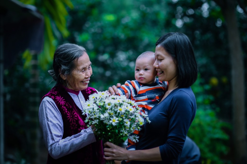 Em cũng là đứa cháu hạnh phúc nhất. Thời gian thai sản của mẹ em cũng hết., mẹ em phải đi làm, phải san xẻ cuộc sống gia đình vơi bố em. Ông bà ở quê phải tức tốc ra chăm em, đó cũng là điều gì đó mà ông bà dành riêng cho em. Thế là ở quê chỉ có 4 người, còn tất cả nhà ta đều về Hà Nội, đều sống cạnh nhau, em là cái gì đó kết nối mọi người hàng tuần gặp nhau,…